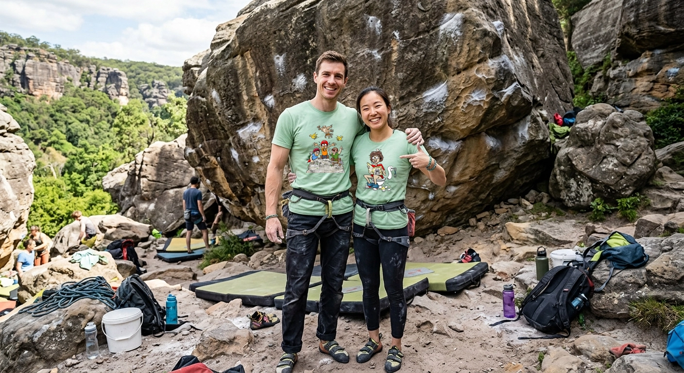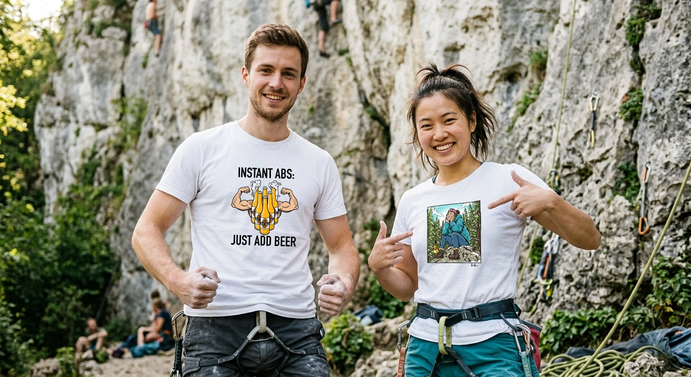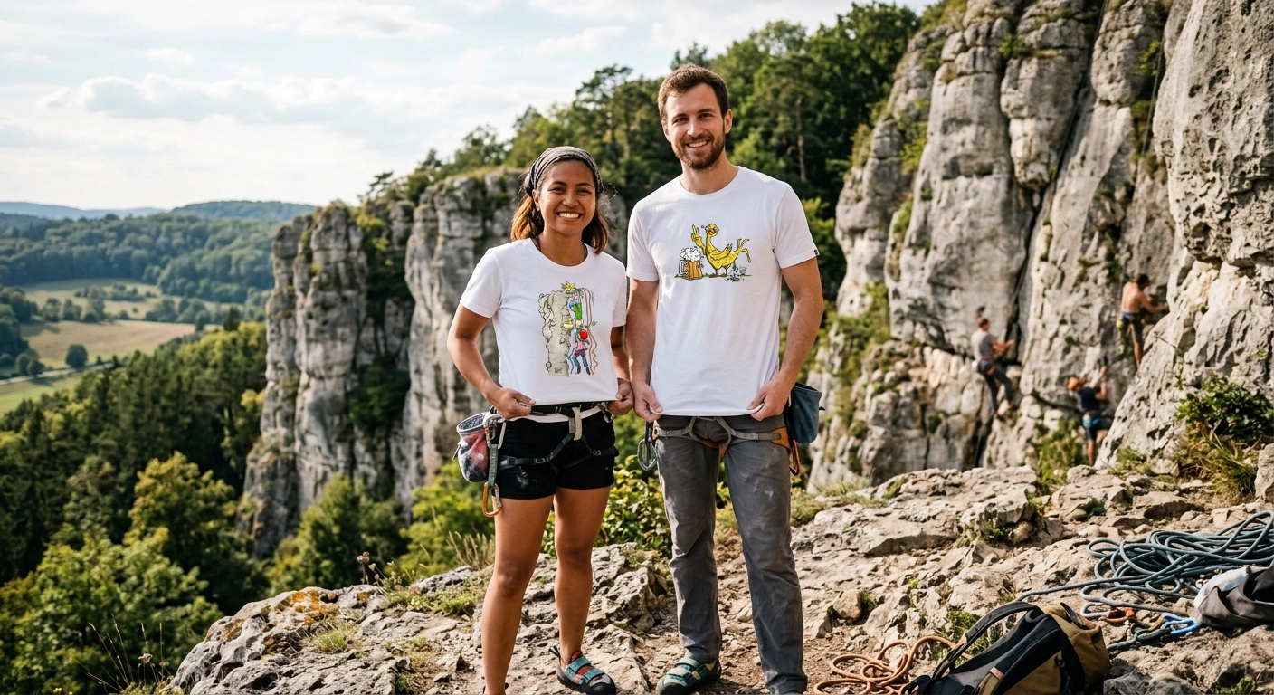 We create unique climbing shirt designs tailored to climbers, boulderers and outdoor sports adventurers! A wide-range of artworks is showcased in this gallery and on our partnered print-on-demand platform company. We are a couple from Germany with passion for nature, art, rock climbing and photography. We hope to share this passion with you and find this same passion through these designs.